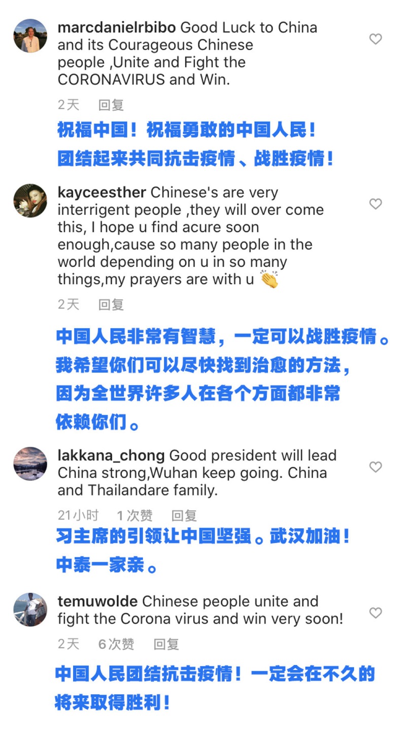 中國採取了前所未有的措施遏制疫情蔓延。不少網友在留言中對中國為保護世界人民生命健康作出的重要貢獻表示感激。