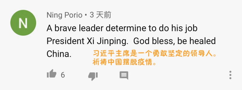 疫情發生後,在中國與疫情進行艱苦卓絕的鬥爭之時,一些西方人士或“落井下石”或“乘人之危”,還利用疫情抹黑中國。一些外國網友看不下去了,通過留言力挺中國,為中國領導人點贊。