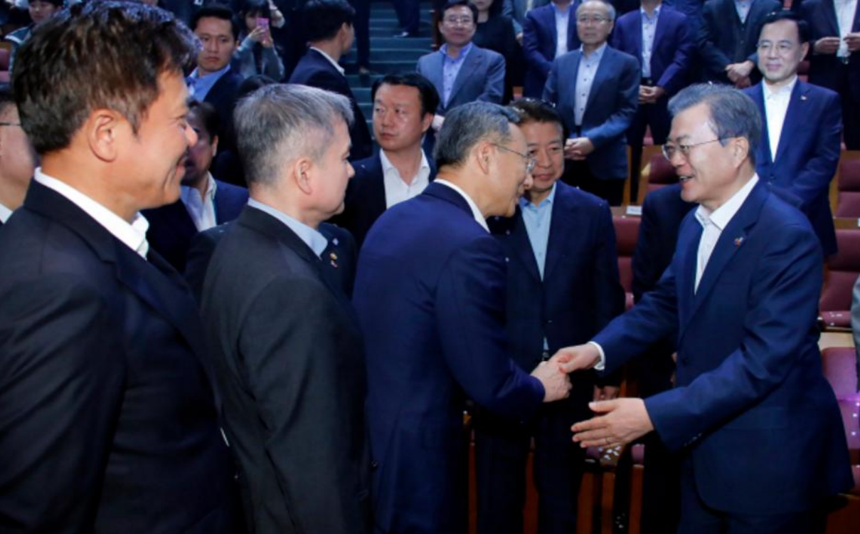 韓國總統文在寅會見韓國三大運營商CEO。圖源:韓國時報