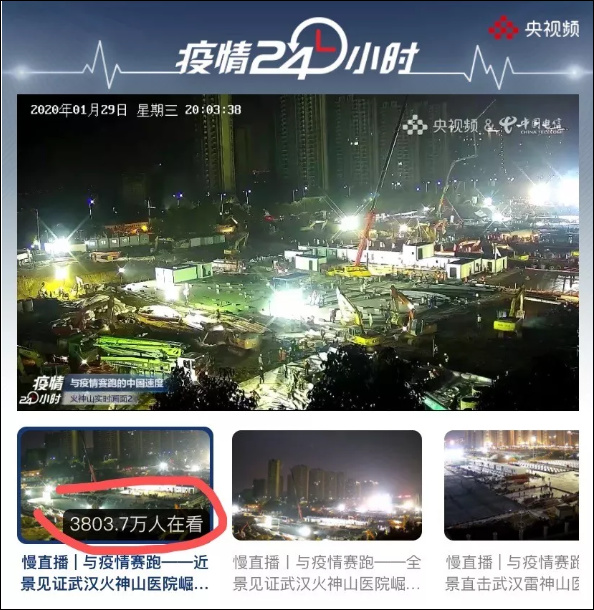 有趣的是,第一時間覆蓋的5G網絡,讓近4000萬“閒瘋帝”同時在線觀看火神山醫院施工現場,當起了雲監工。