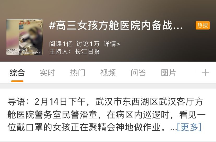#高三女孩方艙醫院內備戰高考#登上熱搜截至小編發稿時,話題閲讀量已過億。