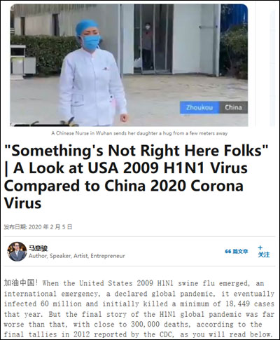 豬流感一開始在北美肆虐,三年後,確切數據顯示全球已經有超過28萬人死於H1N1病毒,這説明顯然美國的防疫系統沒有做好隔離,疫情蔓延到了全球。但其他國家有沒有對美國發動反美輿情戰呢?有沒有煽動恐美情緒,就像西方目前煽動反華,媒體大肆製造恐中輿論那樣?這才是我把目前中國肺炎疫情和當時美國豬流感疫情加以對比的主要原因。