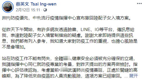 表現之二,惡意禁止口罩出口,反對台胞返台,試圖煽動“兩岸絕情”。