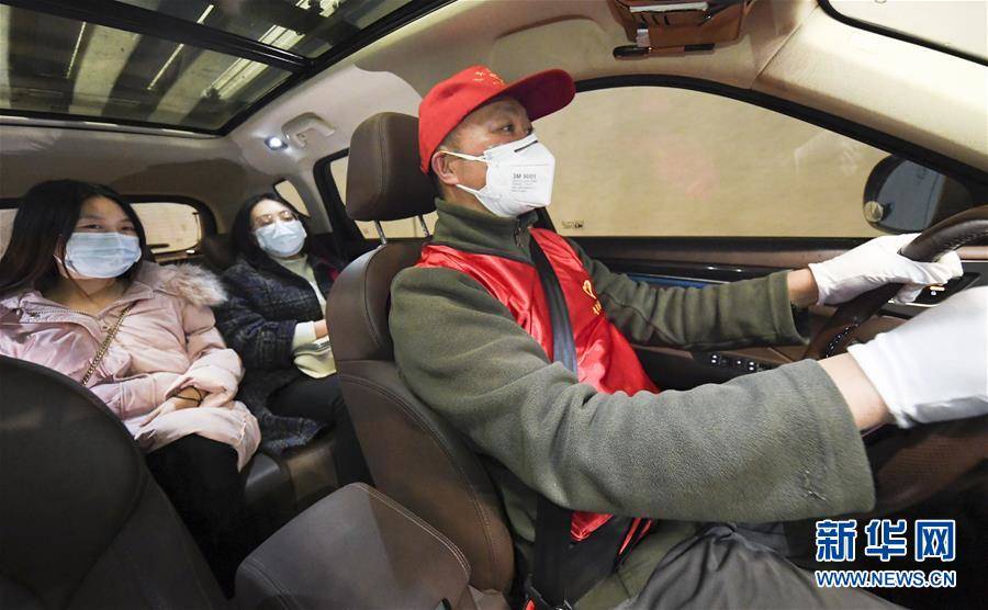 2月6日晚,重慶市雲陽縣“疫情防控”志願服務車隊志願者郭高平開車送雲陽縣人民醫院的醫護人員上夜班。 新華社記者 王全超 攝