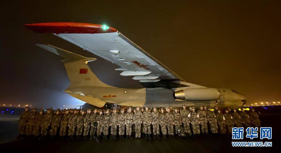 1月24日晚,由陸軍軍醫大學抽調精幹醫務人員組建的醫療隊在重慶江北國際機場停機坪集結,準備連夜馳援武漢。 新華社發