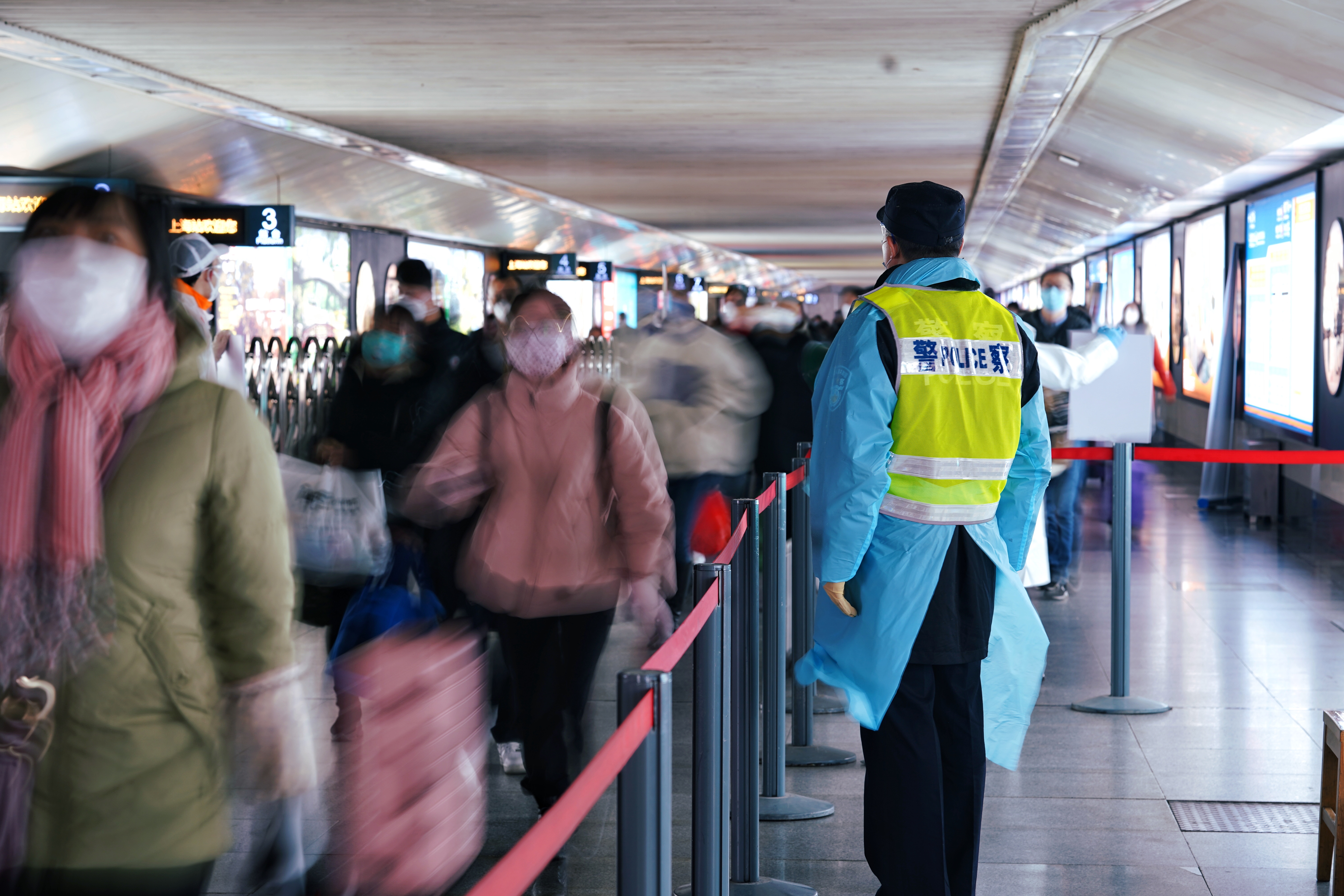 連日來,像他們這樣堅守、奮戰在抗疫一線的民警還有很多,在上海站的各出入口、地下通道售票處、公交站點廣場上,你都能看到他們的身影,有他們在,平安就在!