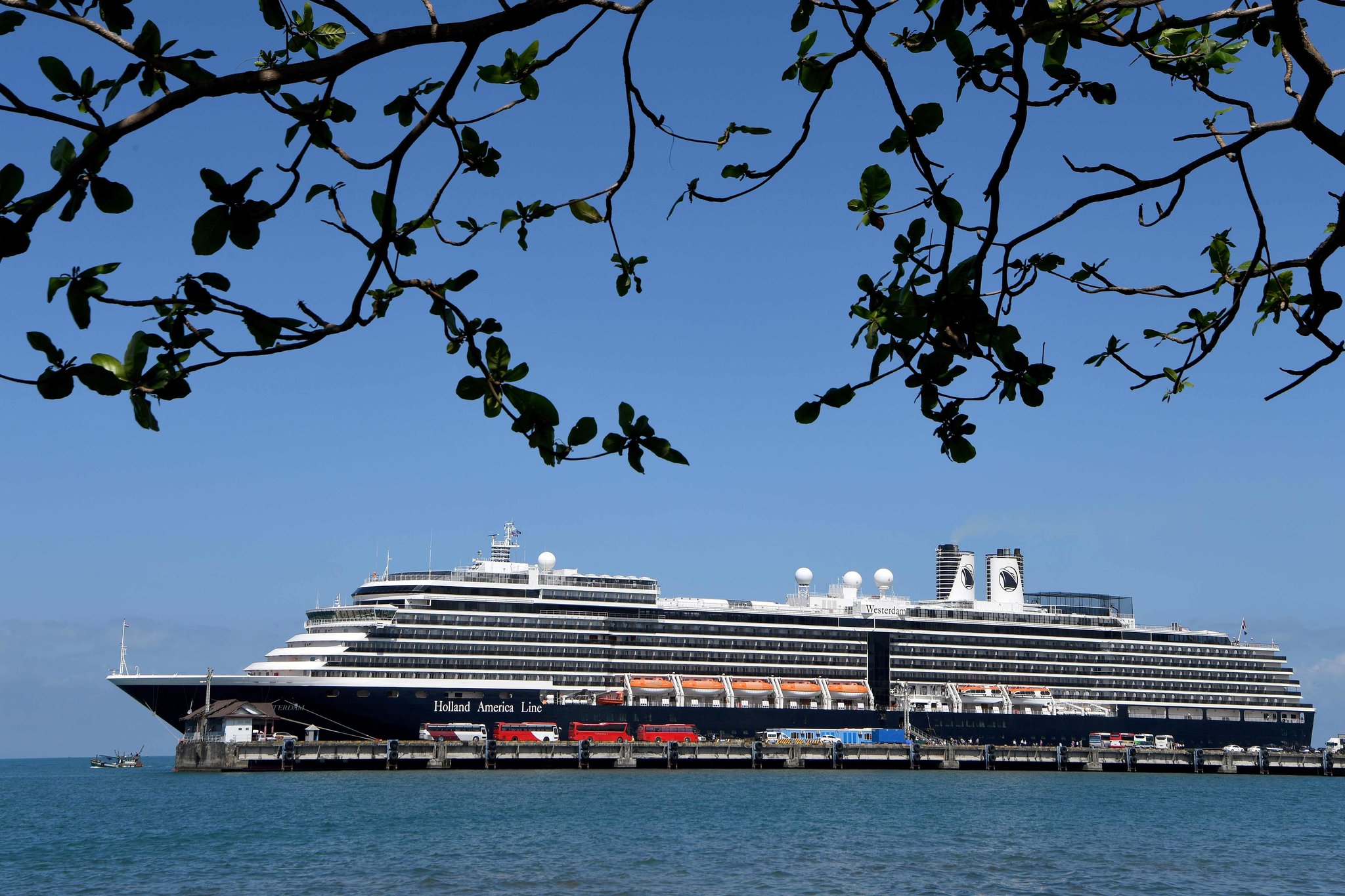 停靠在柬埔寨西哈努克港的“威士特丹”號郵輪 圖自:法新社