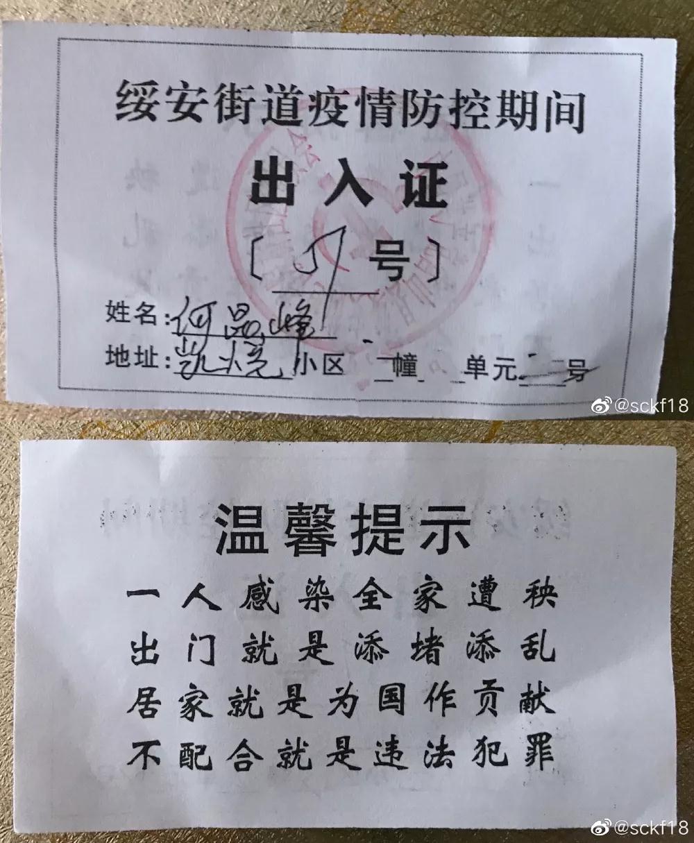 疫情防控措施在不斷升級,出入證也在不斷升級。