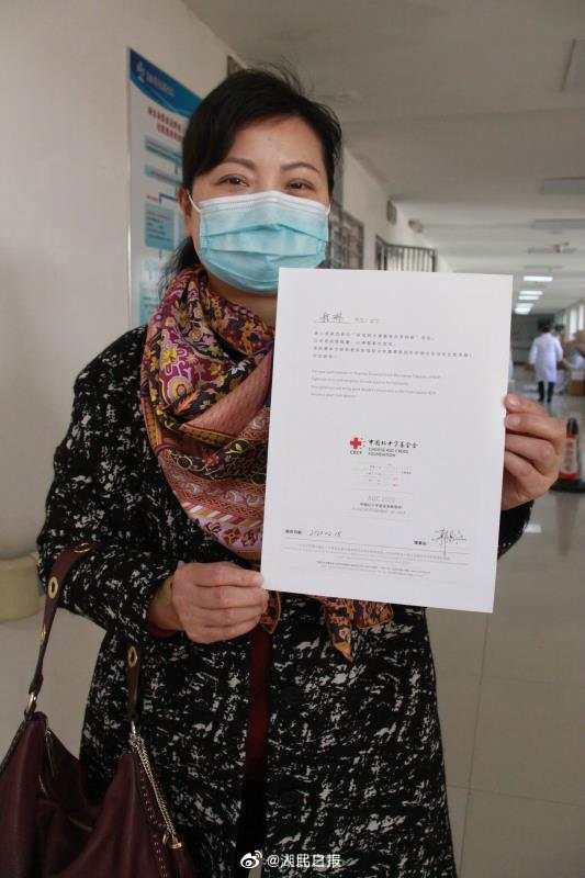 據瞭解,程琳女士1月19日確診新冠肺炎在武漢市第四醫院,經過10天的治療,1月29日康復出院,目前身體狀況恢復良好。她也希望更多的治癒患者能到武漢市金銀潭醫院獻出寶貴的血漿,挽救更多的重症患者。 (湖北之聲記者羅冰 通訊員李潔)