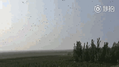 2017年9月,山東濰坊峽山水庫四周出現了大量蝗蟲,漫天亂飛亂啃,千畝糧田受害