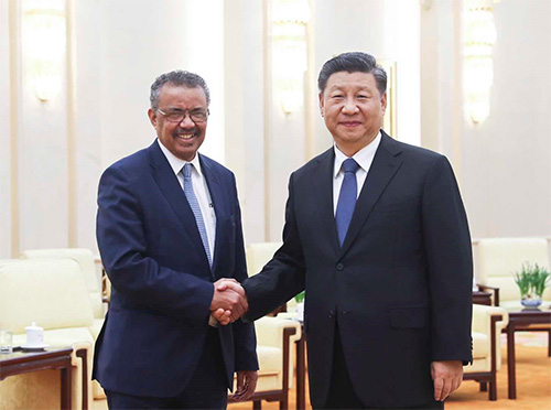 1月28日,習近平在北京人民大會堂會見世界衞生組織總幹事譚德塞。