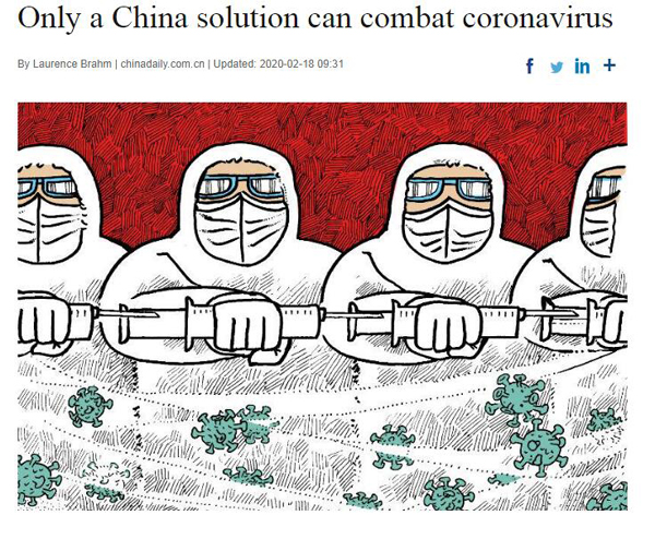 美國專家龍安志(Laurence Brahm)發表評論文章稱,只有中國方案才能抗擊新冠病毒。