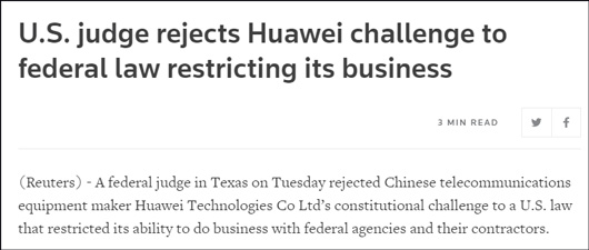 (文/觀察者網 一鳴)華為起訴美國法律違反美國憲法被美國法院駁回了。