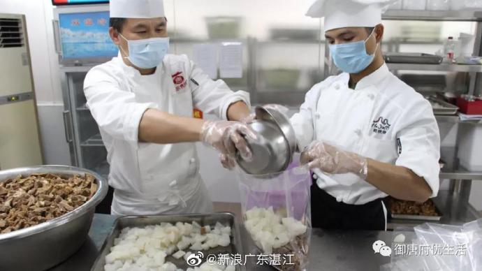 最講究吃的廣東人更給力,身處武漢的一粵菜大廚帶着湛江雞、水產品、虎頭坡果蔬、海割米、三廚蘿蔔等十幾噸食材進駐醫療隊宿舍,從早到晚都提供熱乎乎的食物,守護廣東各地醫療隊成員的胃。