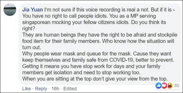 還有網民反駁道,人們搶購口罩,正是因為他們不想得新冠肺炎,因為患肺炎意味着自己和被隔離、無法工作,而囤積物資則是為了以防不測,陳振聲作為一名人民公僕,根本無權指責人民“低能”。