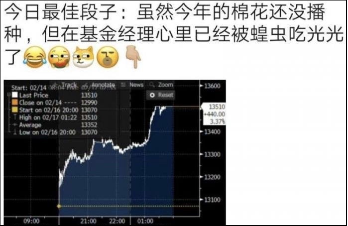 有網友打趣道:“雖然今年的棉花還沒播種,但在基金經理心裏已經被蝗蟲吃光了。”