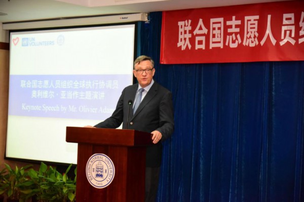 2019年12月19日,中國青年志願者海外服務計劃——服務聯合國機構項目首批志願者出征儀式在上海外國語大學舉行。奧利維爾 亞當先生曾多次到訪中國青年志願者協會,2019年6月21日,應中國青年志願者協會邀請,奧利維爾 亞當一行在北京與首都高校青年志願者代表進行面對面交流,對中國青年志願服務的發展現狀、取得成績表示高度認同。