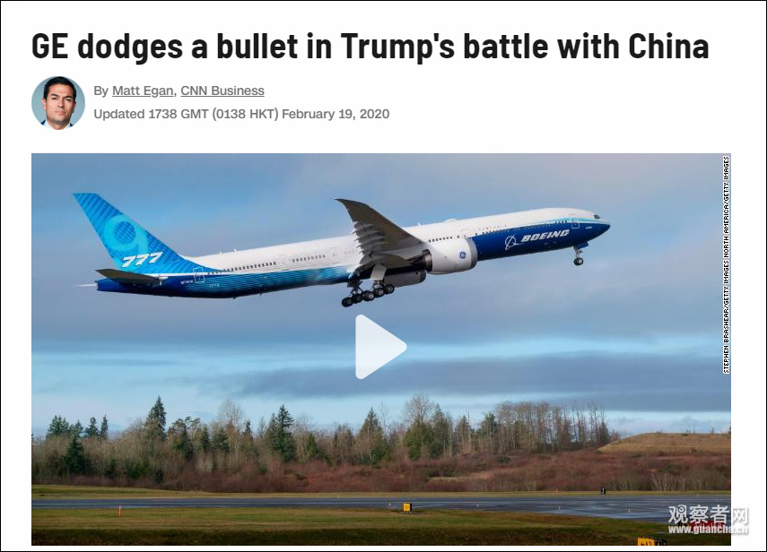 在2月18日特朗普發推反對拿國家安全作藉口禁售發動機,要出售產品給中國後,2月19日,美媒報道稱,美國政府計劃批准通用電氣為中國C919客機供應發動機。
