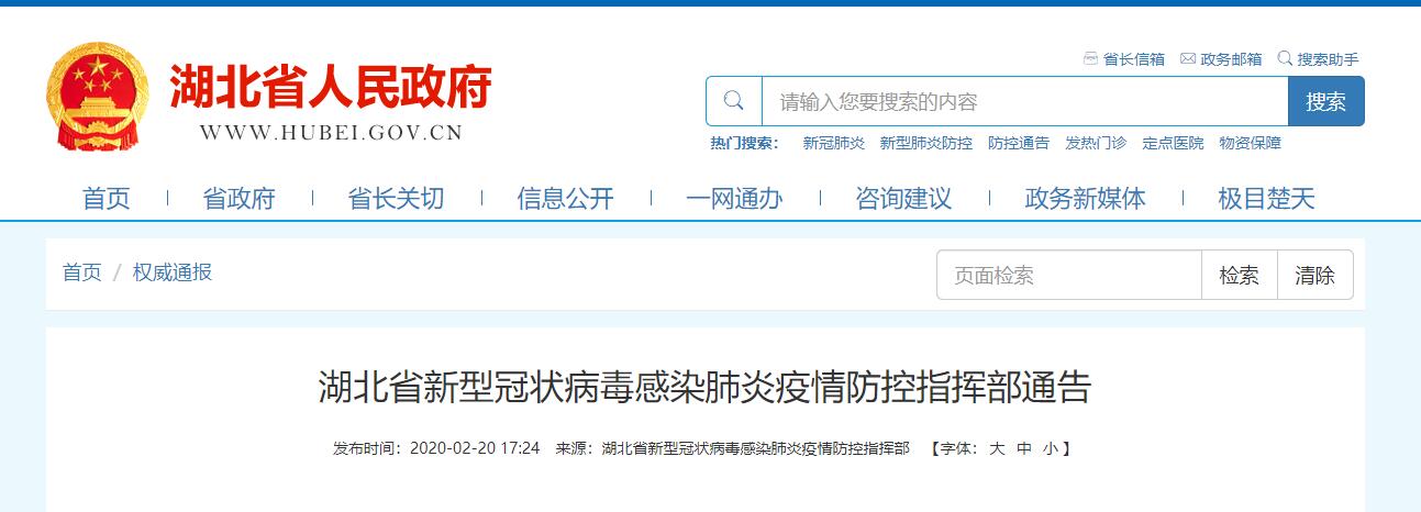湖北省新型冠狀病毒感染肺炎疫情防控指揮部通告