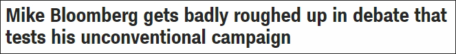 對於這場辯論的表現,美媒紛紛給布隆伯格“差評”,直言是“災難”:包括準備不充分,疲於應對攻擊,還“越描越黑”。