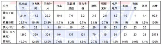 不過,我國碳纖維應用領域每年正在增加,並朝着國防、軍工、航天、航空、新能源汽車等領域發展。由於國產大飛機的逐步問世及軍用飛機、 運載火箭、導彈和衞星的研發,碳纖維複合材料在這些領域的應用也將愈加廣泛。其中,已投產的C919機身中碳纖維複合材料用量約為12%,正在研發的C929這一比例有望超過50%。