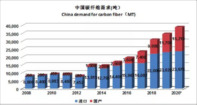 不過,2000年前中國碳纖維研發仍處於低谷。直到2001年1月,在兩院院士師昌緒寫作《關於加速開發高性能碳纖維的請示報告》推動下,科技部於次年設立國家863計劃的碳纖維關鍵技術304專項。這才再次點燃了中國碳纖維的發展之炬。尤其自2007年起,碳纖維工廠如雨後春筍般拔地而起。這推動了中國碳纖維市場迅速壯大,並躋身世界前三。