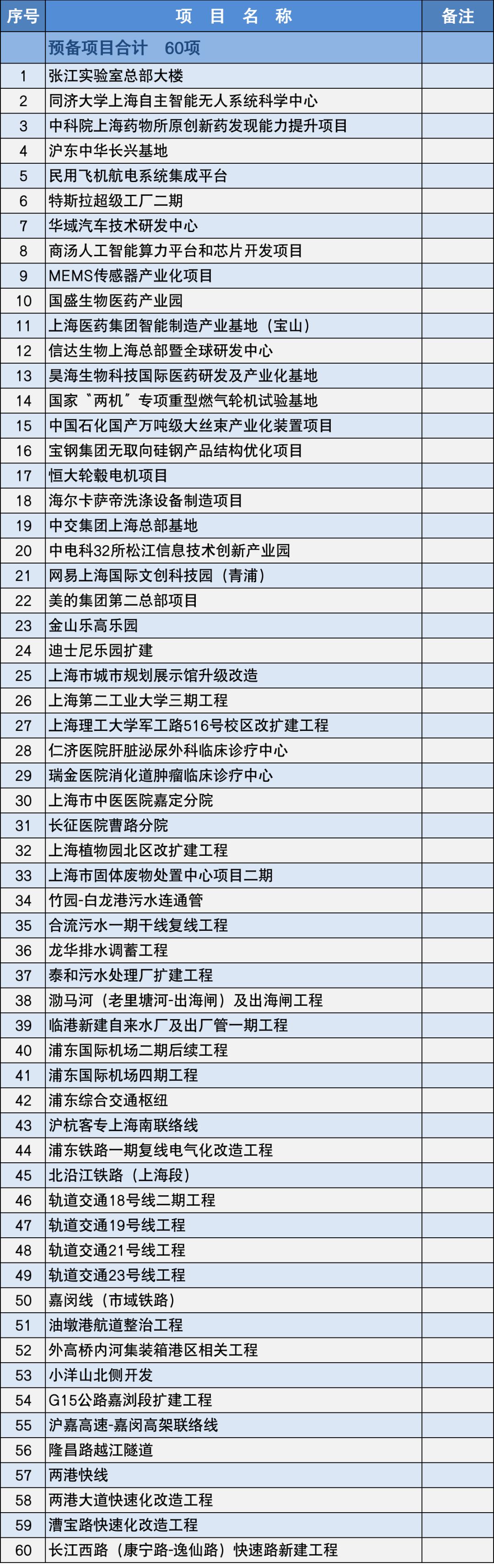 據瞭解,重大預備項目是指項目現階段手續尚未齊全,待齊全後近期準備實施的項目,本次安排的預備項目共60項。