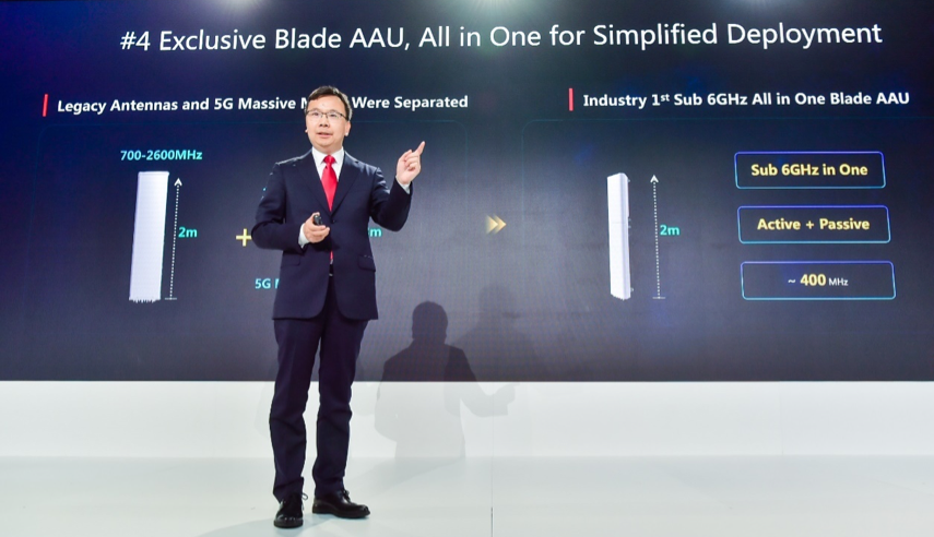 具體而言,四個“最”分別是:最豐富的5G商用部署經驗,最完備的5G產品系列,最先進的Massive MIMO算法,最全面的節能解決方案;六個“唯一”分別是業界唯一超寬帶解決方案,業界獨創Blade AAU,業界唯一毫秒級動態頻譜共享商用能力,唯一支持NSA/SA雙棧架構商用,業界唯一支持端到端超級上行,唯一支持端到端切片商用。