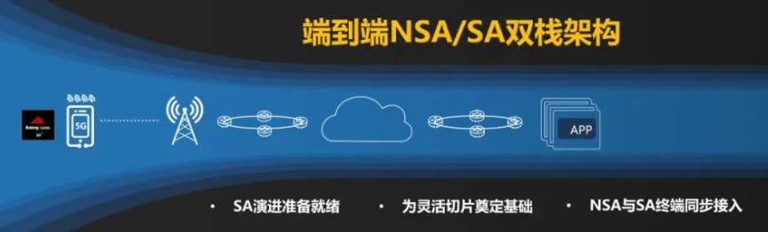 華為擁有從無線接入網、核心網、終端芯片等端到端支持NSA和SA雙棧架構規模商用的經驗,全面兼容NSA/SA終端同時接入,並幫助運營商構築面向終端用户、家庭和行業的全業務能力。