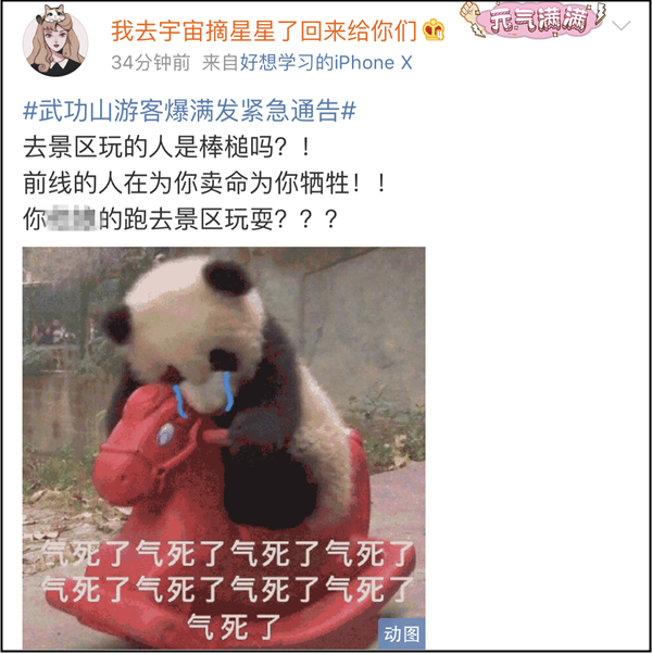 24日一早,“武功山遊客爆滿發緊急通告”的熱門話題就登上了微博熱搜榜的第一名,400多萬網友在線熱議。