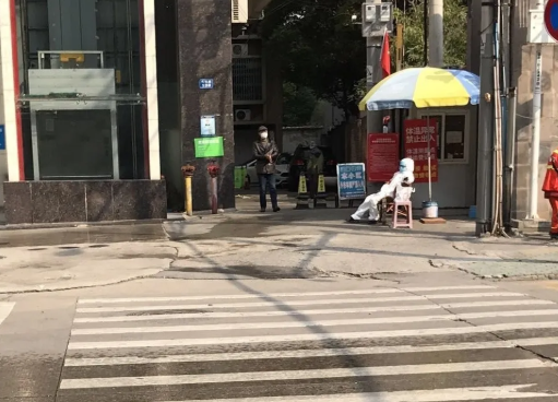 24日中午,記者在北湖正街附近看到,這裏老舊小區比較多,但都進行了嚴格封閉,門口搭建了帳篷,有專人值守,值守人員身穿防護服,進出人員管理比較嚴格。