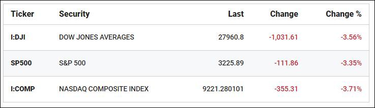 (觀察者網訊)美股在當地時間2月24日經歷“黑色星期一”,三大指數跌幅均超3%,道指一天之內跌幅3.56%,失守28000點關口。