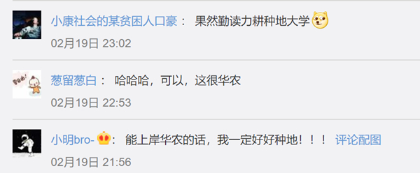 微博網友點贊:“可以,這很華農”“我一定好好種地”。