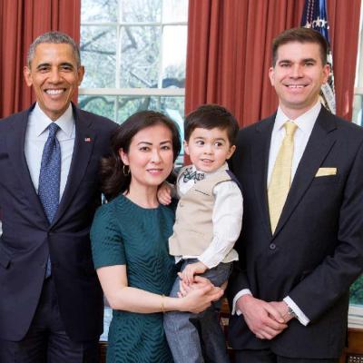 本文作者之一,伊麗莎白·範全家在白宮與奧巴馬合影