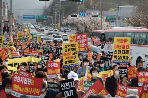 京畿道清平的市民抗議“新天地”在當地修建紀念館 圖自:社交媒體