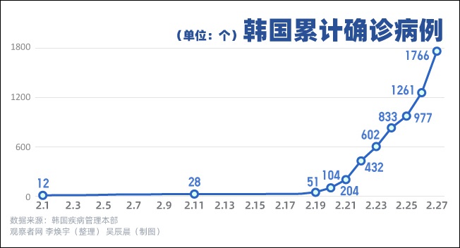 目前,韓國累計新冠肺炎確診病例已有1766例,作為疫情中心的大邱市更是累計確診1132例,佔韓國總病例的64%,但大邱顯然沒有能力獨立應對這等規模的疫情。