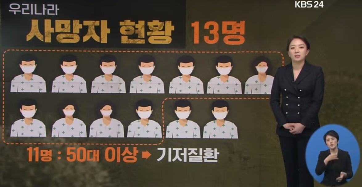 韓國13例死亡病例中有11例都是50歲以上,且此前多有肺、腎臟的病史 韓媒視頻截圖