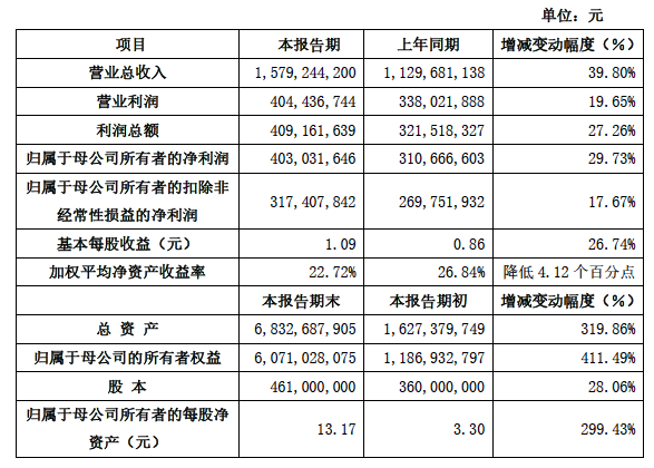 與此同時,報告期末,總資產與報告期初相比增加319.86%,歸屬於母公司的所有者權益與報告期初相比增長411.49%,歸屬於母公司所有者的每股淨資產與報告期初相比增長299.43%,主要原因是公司2019年首次公開發行股票,募集資金到位大幅增加了公司的淨資產和總資產。
