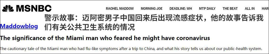 《邁阿密先驅報》2月24日報道的這個故事,迅速引起了美國各大媒體包括《華盛頓郵報》、MSNBC、《商業內幕》等的關注,並直指美國醫保體系的缺陷:不完善的醫保和鉅額的費用,如何能指望人們主動去醫院檢測,為防止疫情傳播做貢獻?