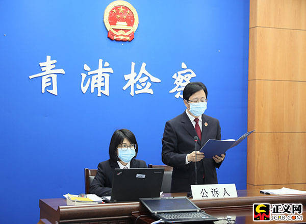 上海市青浦區檢察院指派公訴人遠程視頻支持公訴,法院採用互聯網在線庭審模式進行“雲庭審”,並在中國庭審公開網同步直播。