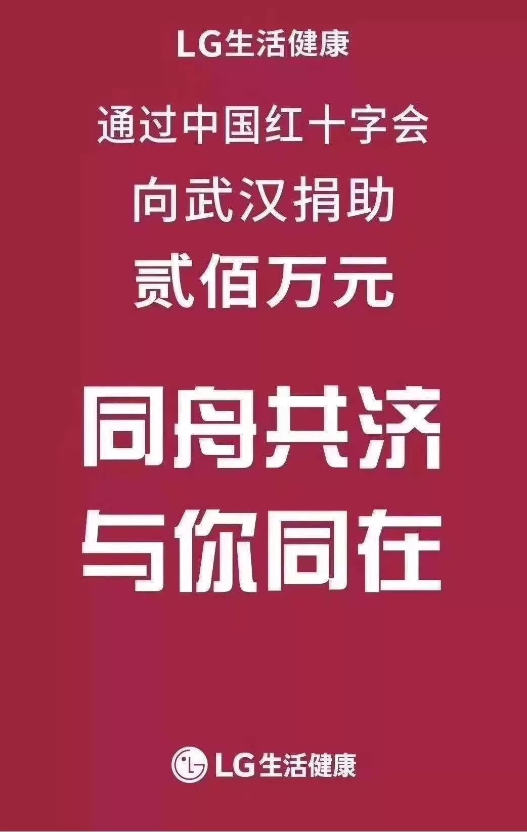 LG生活健康通過中國紅十字會捐贈200萬元,支持疫區購置醫用物資。