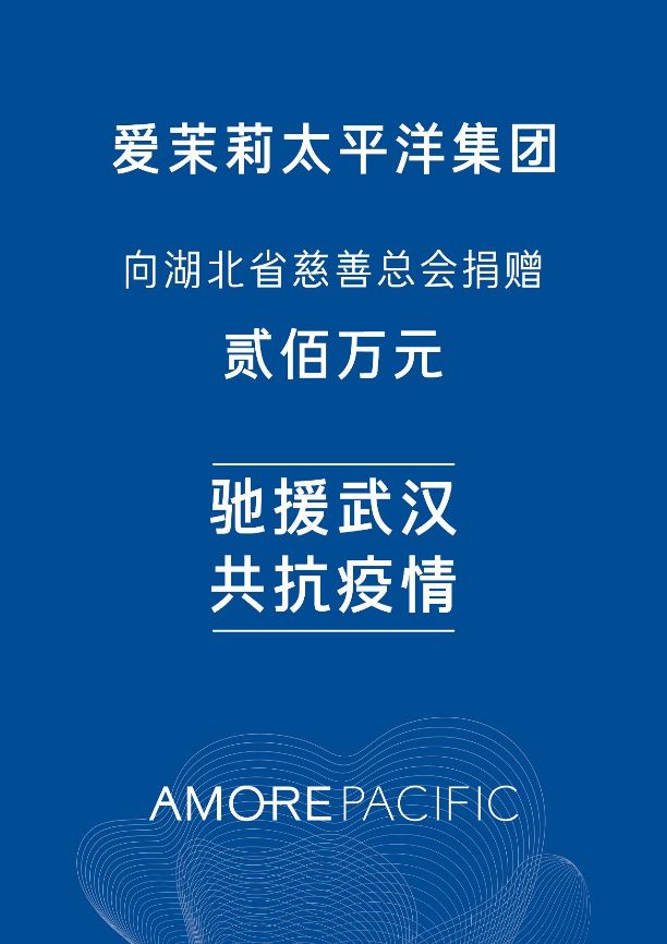 愛茉莉太平洋向湖北省慈善總會捐贈200萬元,為湖北省疫情嚴重地區抗擊新型冠狀病毒肺炎疫情提供資金支持。