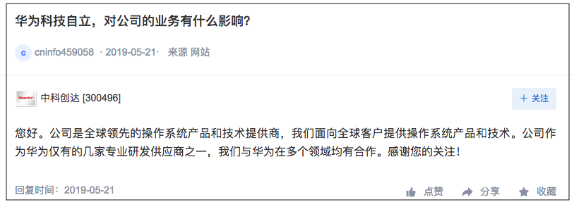 而在2019年11月14日,在被問及“是否有計劃參與鴻蒙等華為自主操作系統開發”時,中科創達回應:暫未參與,與客户業務的具體細節暫不方便透露。