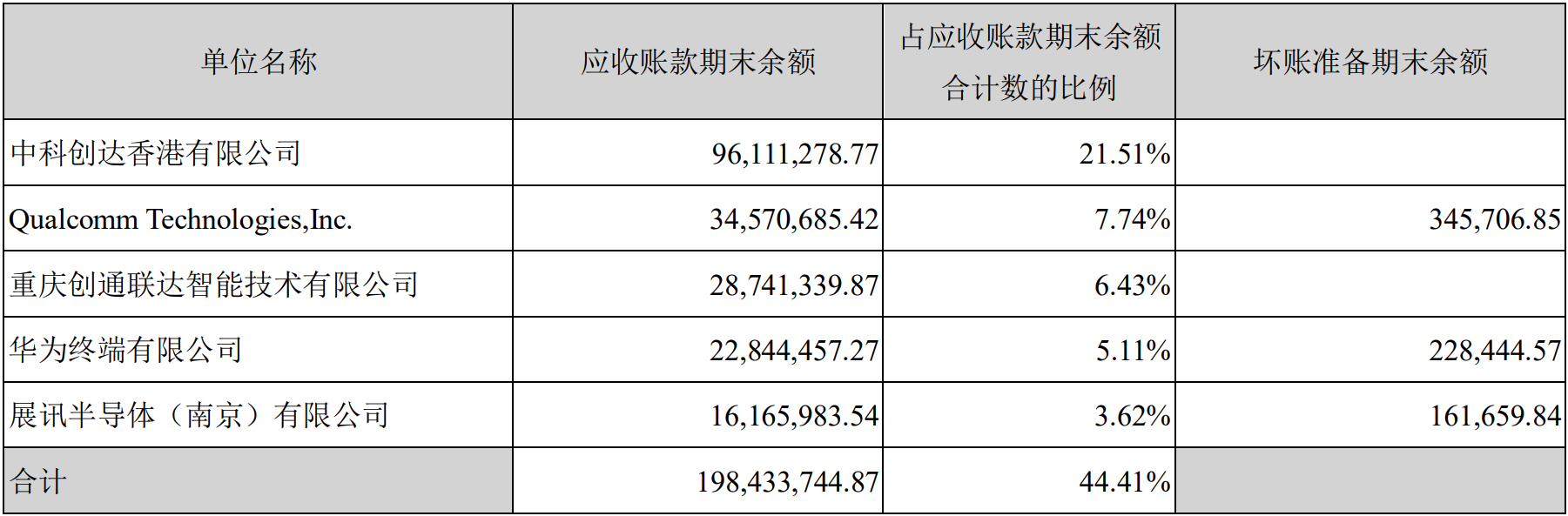 值得一提的是,排名第一的中科創達香港有限公司為中科創達重要的境外經營實體之一,期末應收款餘額為9611萬元;排名第三的重慶創通聯達智能技術有限公司,為中科創達與高通的合資公司,期末應收款餘額達2874萬元。