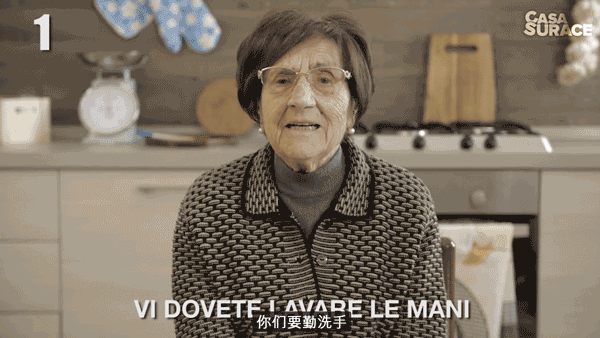 為了全球的網友更好地收到這份“防疫指南”,奶奶所屬的視頻博主集合賬號@Casa Surace 還特意製作了中文字幕,方便同受疫情影響的中國網友理解。
