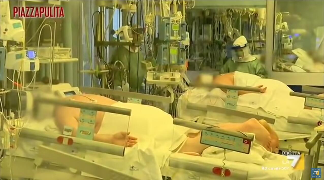 3月5日,意大利電視頻道“La7”就罕見地播出了一段在北部的克雷莫納醫院ICU病房中拍攝的視頻,畫面中全副武裝穿着防護服的醫護人員正在治療患者,他們每天要工作12到14個小時。