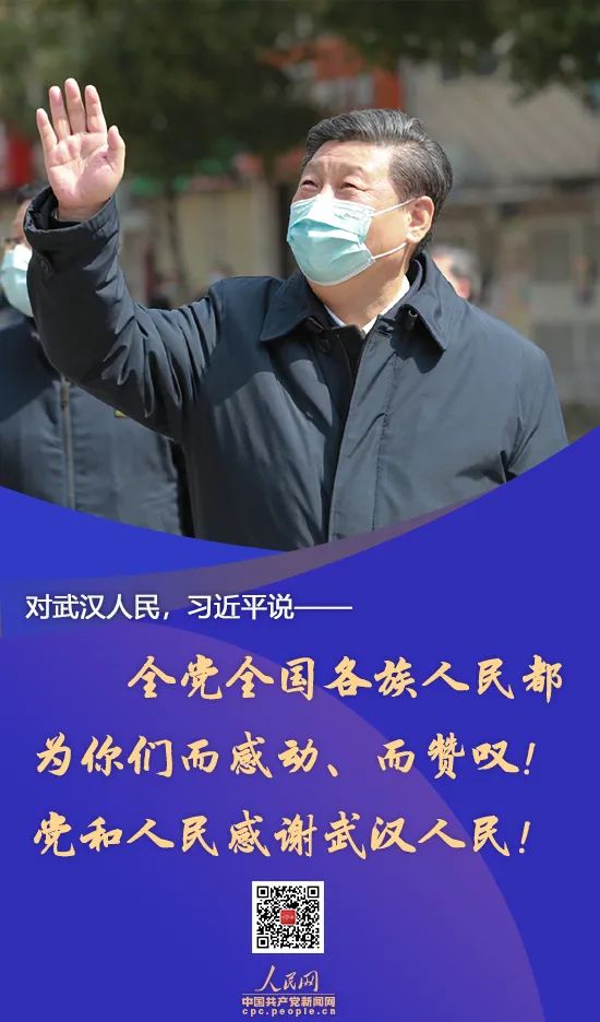● 武漢不愧為英雄的城市,武漢人民不愧為英雄的人民,必將通過打贏這次抗擊新冠肺炎疫情鬥爭再次被載入史冊!全黨全國各族人民都為你們而感動、而讚歎!黨和人民感謝武漢人民!