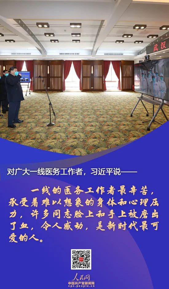● 廣大醫務工作者堅韌不拔、頑強拼搏、無私奉獻,展現了醫者仁心的崇高精神,展現了新時代醫務工作者的良好形象,感動了中國,感動了世界。