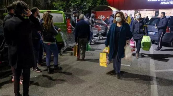 羅馬、那不勒斯、都靈和巴勒莫等地24小時營業的超市出現恐慌性搶購 圖源:意大利媒體