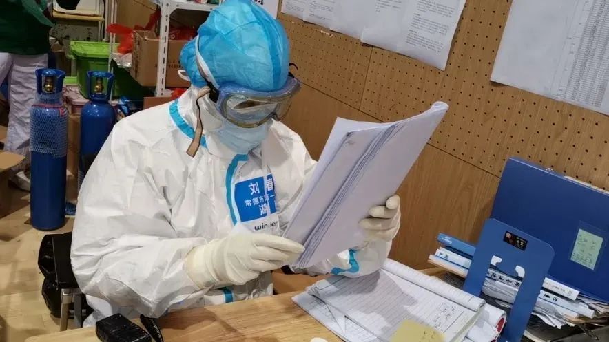 “一旦進病區,我們儘可能在裏面待久一點,因為穿脱防護服程序複雜,患者出現緊急情況也不允許等待。”彭曉洪説,他們通常會等到患者病情穩定才會走出病區,防護服經常是濕了幹、幹了又濕,從早上進病區工作,出來往往已經是下午兩三點。“工作前,我們都會盡量補足水分,因為進病區後一切都是未知數,要挺得住。”彭曉洪説。